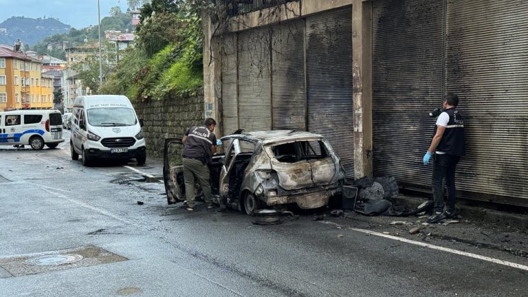 Rize’de park halindeki otomobil yandı